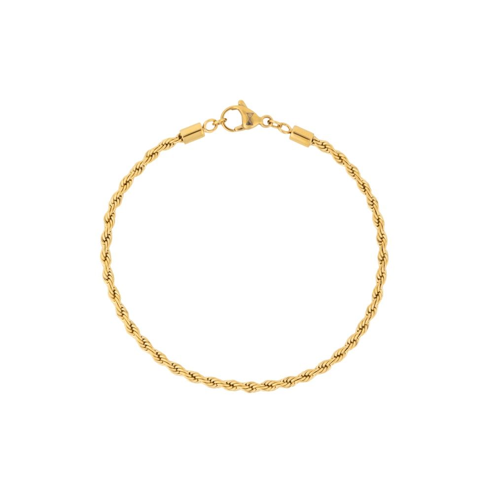 Klassieke rope armbandje gemaakt van 3mm stainless steel met gold plating. Om de juiste maat te bepalen is het handig om de polsomtrek op te meten en daar ongeveer 2 cm bij op te tellen.
