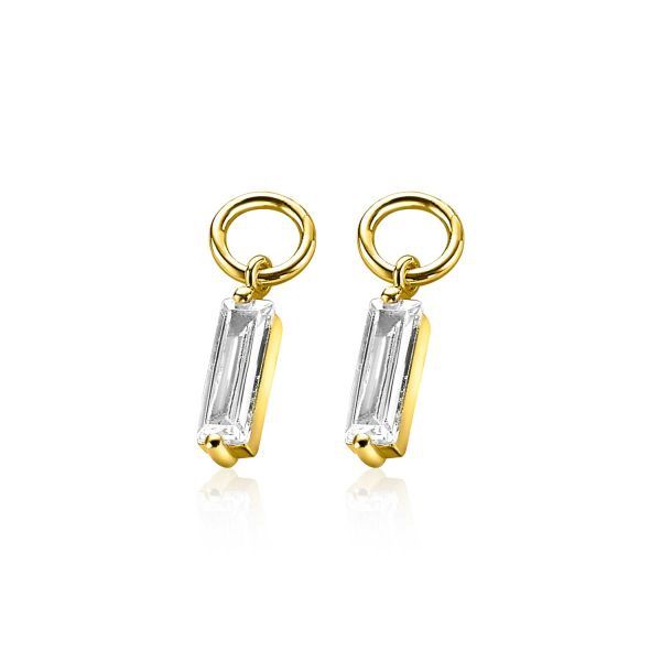 ZINZI zilveren oorbedels geel verguld (15mm) met modieuze baguette geslepen rechthoekige witte zirconia's. Hang deze oorbedels sierlijk aan je zilveren Zinzi oorringen. De oorbedels zijn 15mm lang. De oorringen zijn niet bij de prijs inbegrepen. Vervaardigd van eerste gehalte zilver (925) en voorzien van een extra geelgoudkleurige laag.
